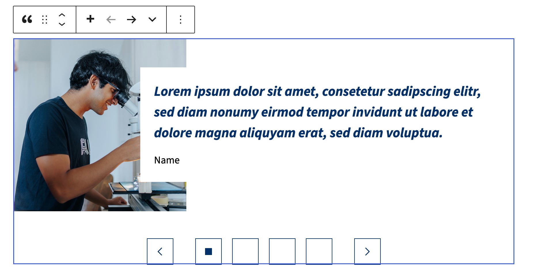 - Über das Plus-Icon in der Blockwerkzeugleiste können Sie ein neues Testimonial hinzufügen.