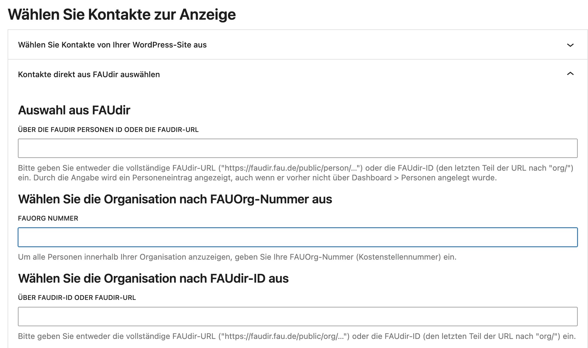 - Navigieren Sie ins WordPress Backend zu Einstellungen > RRZE FAUdir