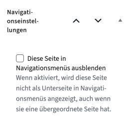 - Scrollen Sie zum Bereich Navigationseinstellungen und setzen Sie ein Häkchen bei Diese Seite in Navigationsmenüs ausblenden.